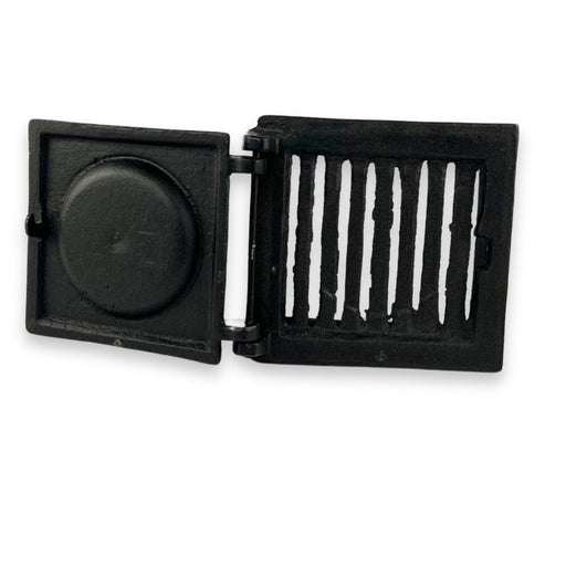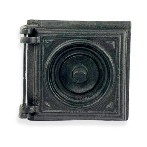 Josef DavidssonsHögerhängd låsbar sotlucka av gjutjärn. Mått lilla luckan: Ram 16cm, lucka 12cm, stos utvändig 12cm, öppning invändigt 10cm. Djup stos 25mm Mått st...