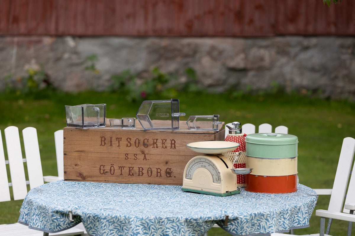 Fina hyllor och skåp med tillhörande skäppor och burkar i glas från Ormesta. Kryddhyllor med skäppor i glas har tidigare tillverkats under märken som Ideal, Reda och Nord. De hade alla liknande form och storlek, vilket gör att många äldre skåp i dag innehåller en blandning av dessa märken – efter att skäppor gått sönder och ersatts med liknande modeller.