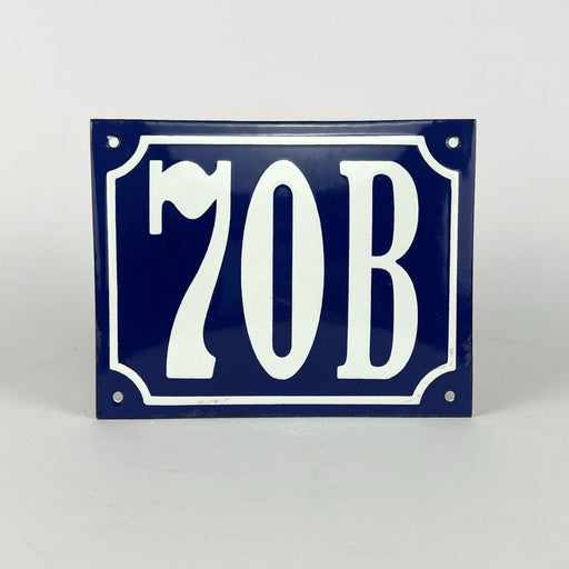 Classic blue enamel sign with number 70B - perfect for house numbering with clear white text on a deep blue background. Size: 15x12cm