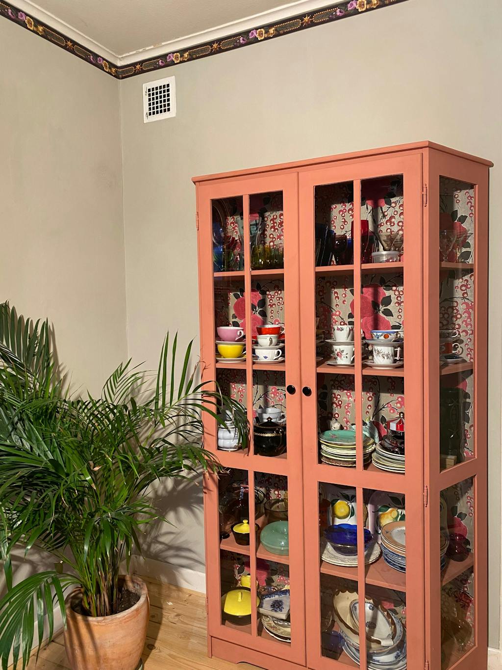 Bakom vitrinskåpet äggoljetempera nr. 9-605.