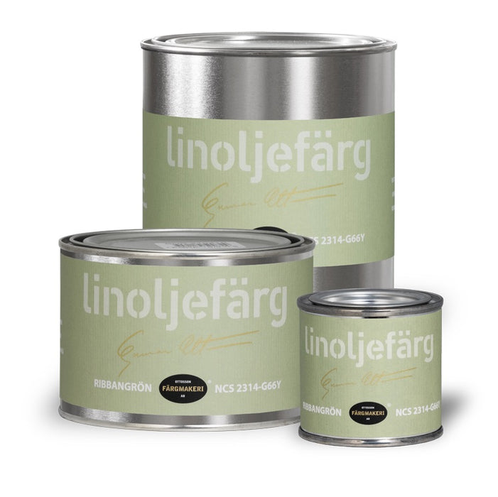 Tillverkad på svensk kallpressad kokt linolja och färgpigment.
